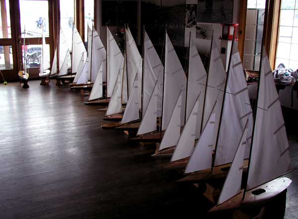 Some of the pond boats from 2003 and previous years on display in the boat house