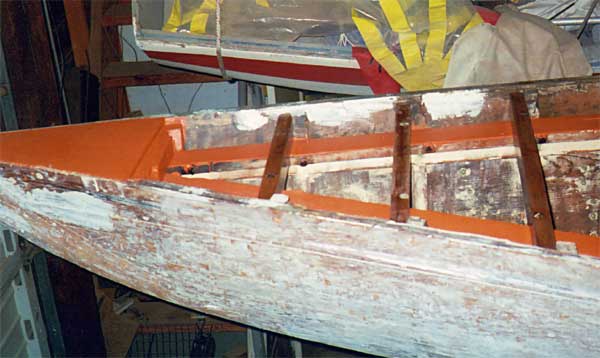 Detail of foredeck beams. Note red lead paint on the shelf.