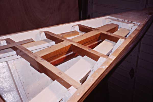 Deck blocking for bow cleat and forestay.