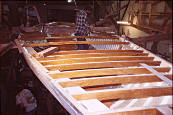Installing new foredeck beams.